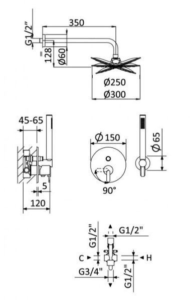 - Размер верхнего душа, см:30