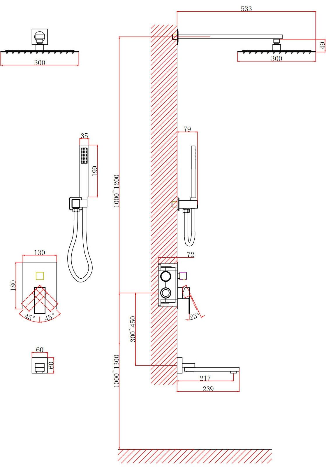 Душевая система DQ Bayern.Liszt DA1515608A04 белый матовый купить