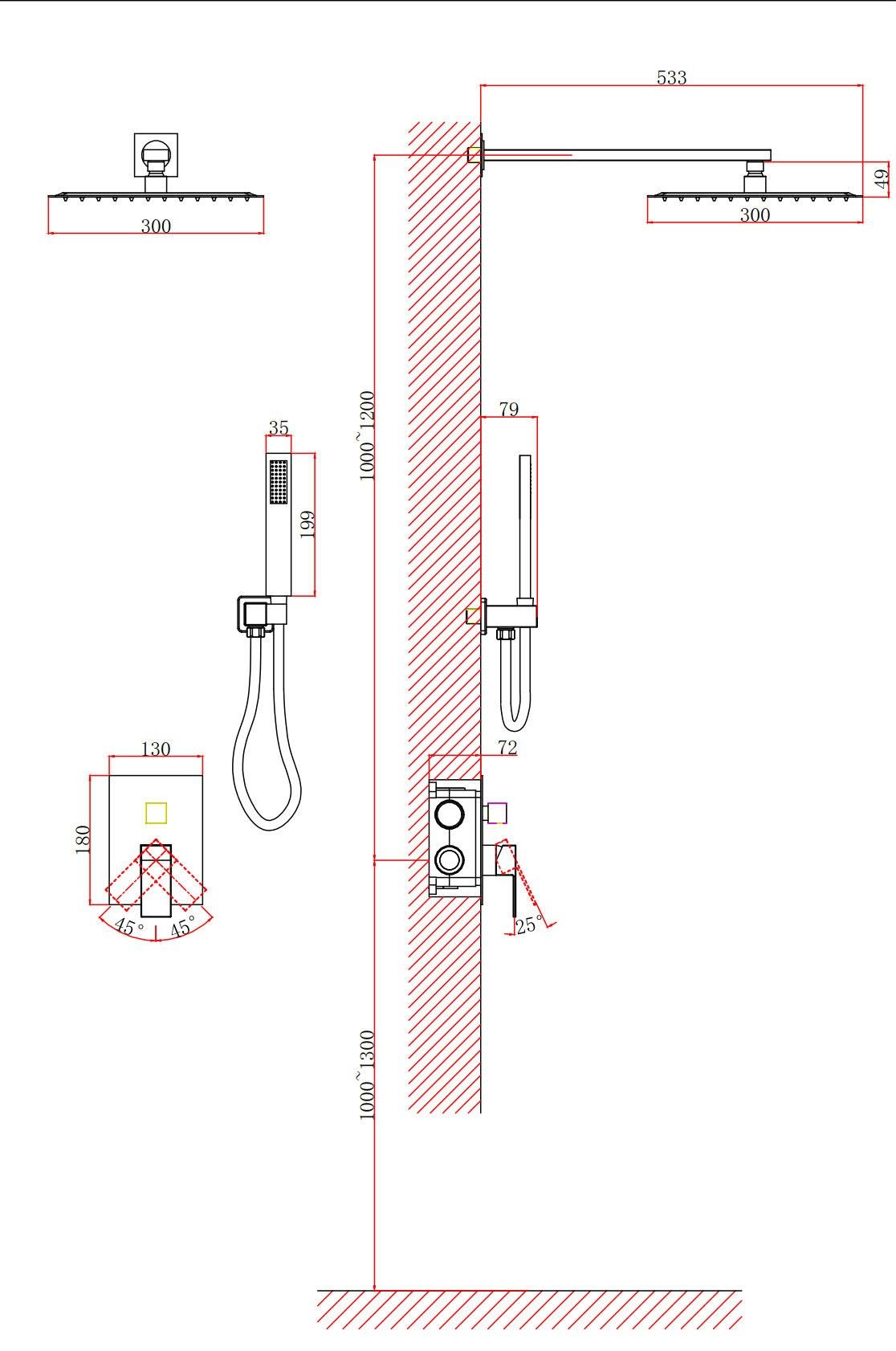 Размер верхнего душа, см:30