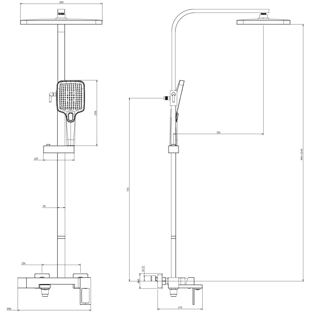 Душевая система DQ Dortmund DA1713701 320x210 мм, со смесителем, хром