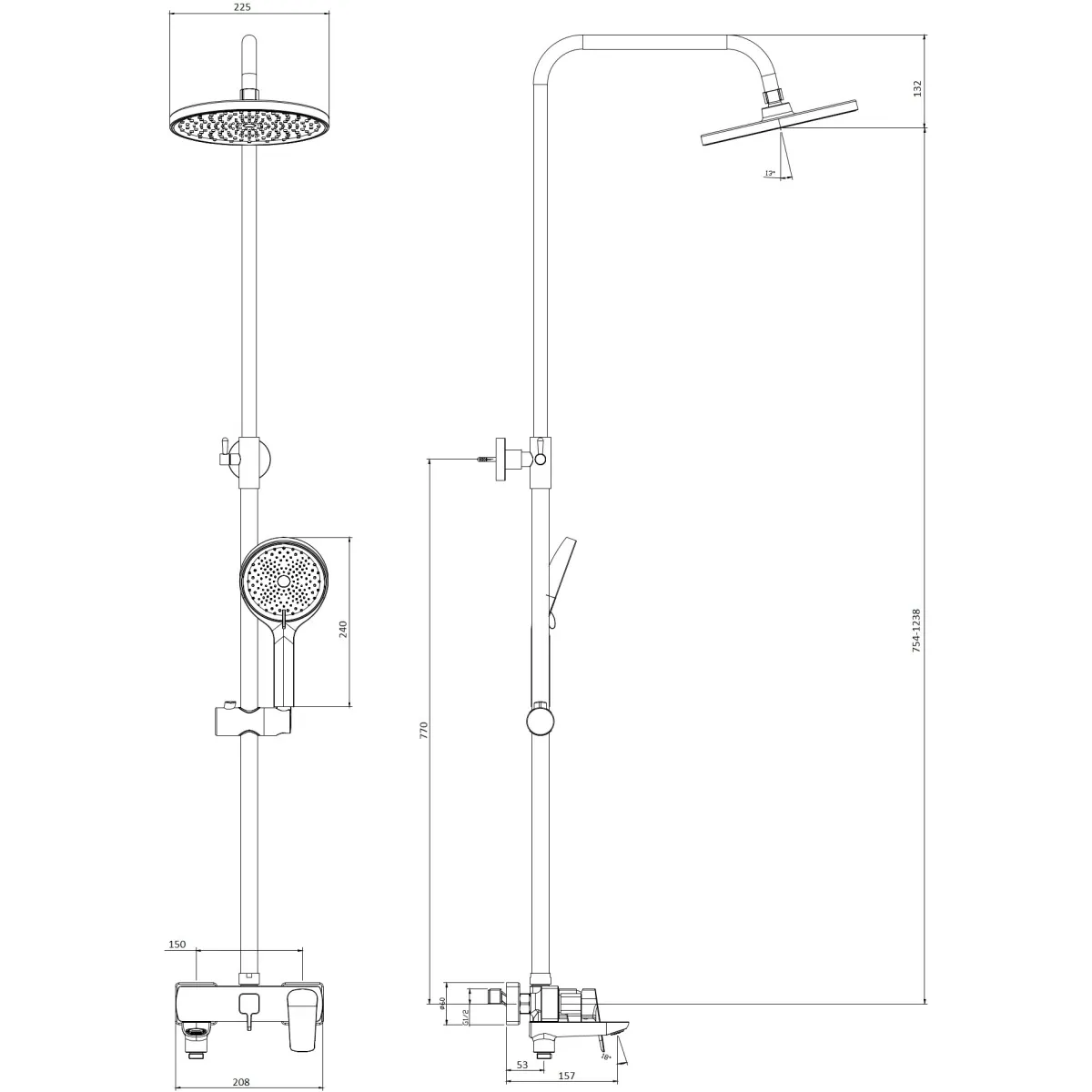 душевая система со смесителем