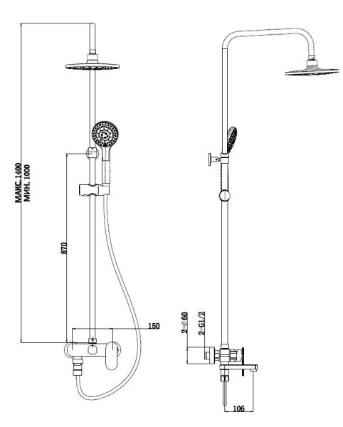 Комфорт: три режима ручной лейки, регулируемая высота.