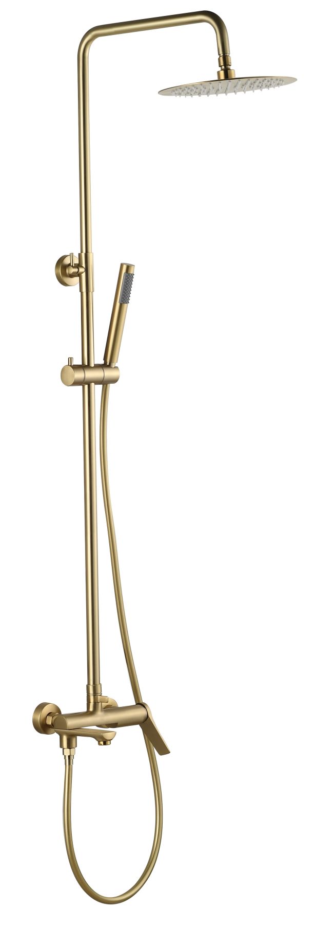 Душевая система Shanghai Gold ST1425SHAGold: Роскошь и элегантность в каждой детали.Позвольте себе роскошь с душевой системой Shanghai Gold. Ее золотистый цвет и изящный дизайн преобразят вашу ванную комнату. Верхний душ диаметром 250 мм и ручной душ из нержавеющей стали обеспечивают комфортный и расслабляющий душ. Телескопическая штанга позволяет регулировать высоту, а система защиты от перекручивания шланга гарантирует комфортное использование.Преимущества:Роскошный дизайн: золотистое покрытие, изящные линии.
