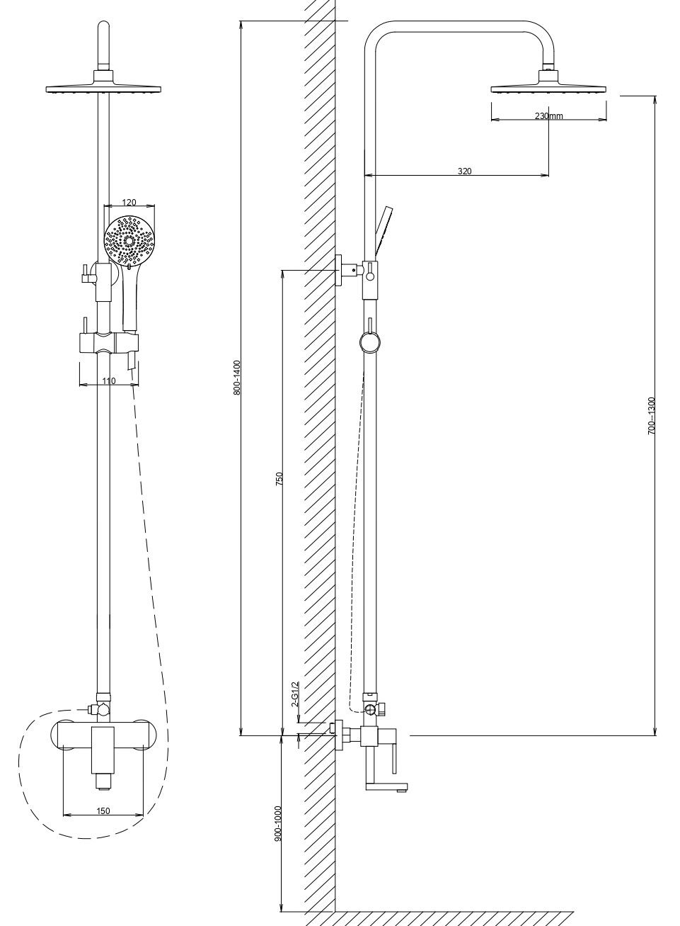 • Размер ручного душа, см: