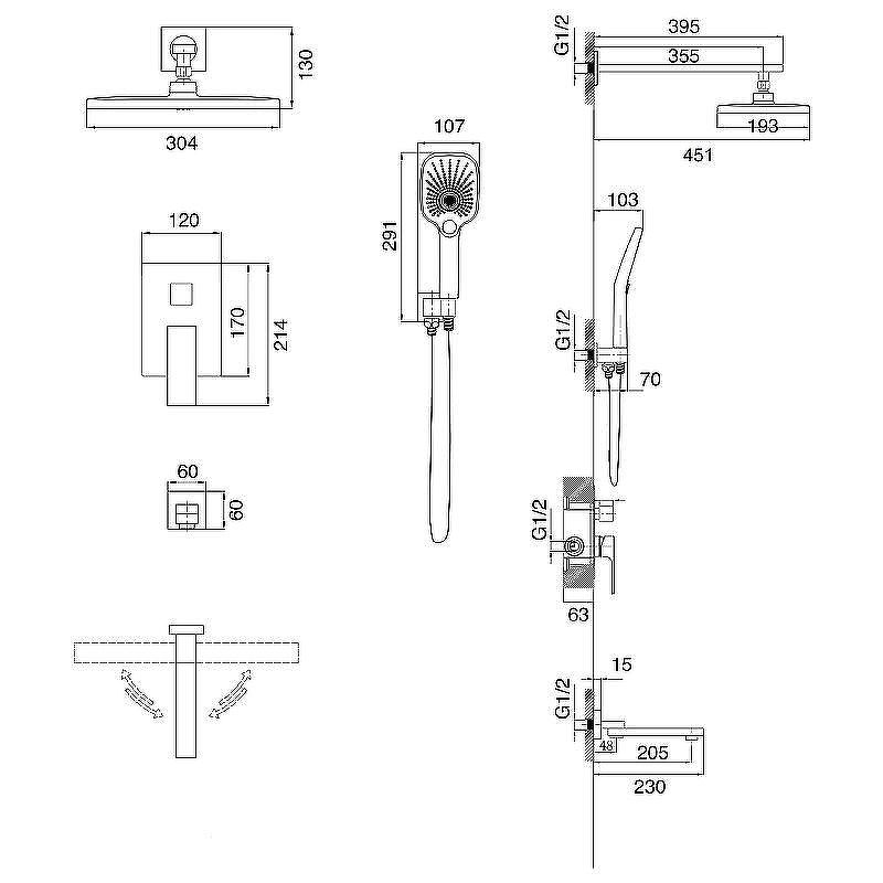 Душевая система Grossman Style 501.K35.05.210 Черная матовая