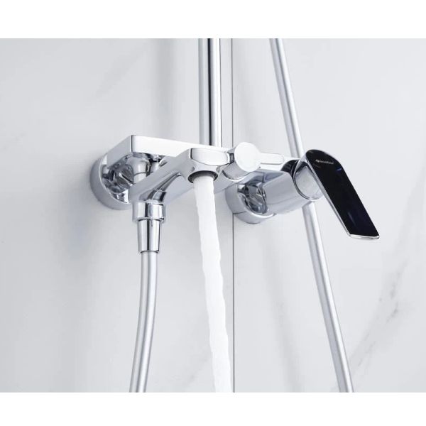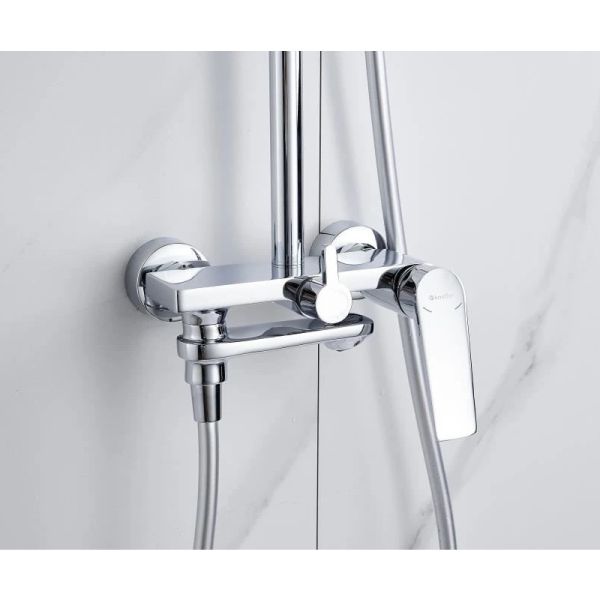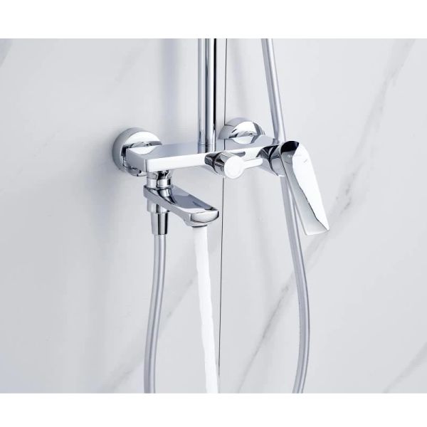 Погрузитесь в роскошное ощущение тропического дождя! KN-62 Muse — это изысканная душевая система с верхним душем, выполненная из прочной латуни и покрытая зеркальным хромом. Настоящий оазис комфорта в вашей ванной комнате.