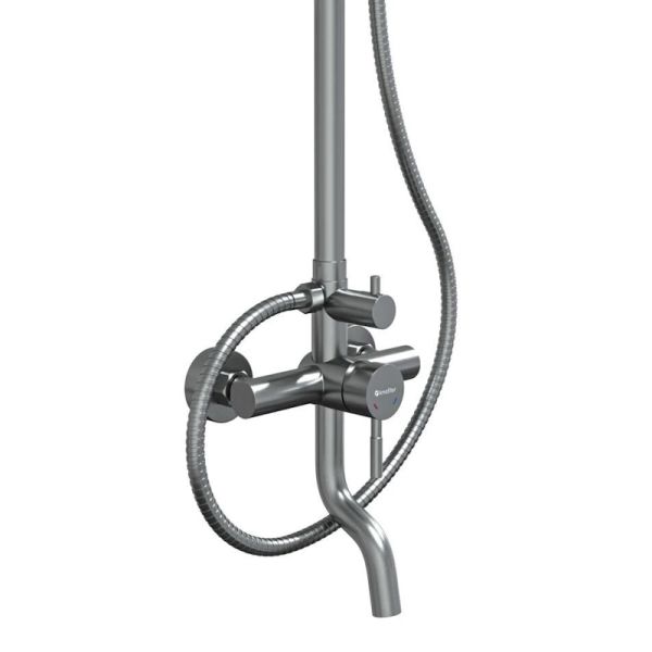 Погрузитесь в комфорт с душевой системой KNOTLOR SS-06 STREAMLINE. Матовая сталь SUS 304, минималистичный современный дизайн и тропический душ создают идеальное сочетание эстетики и функциональности.