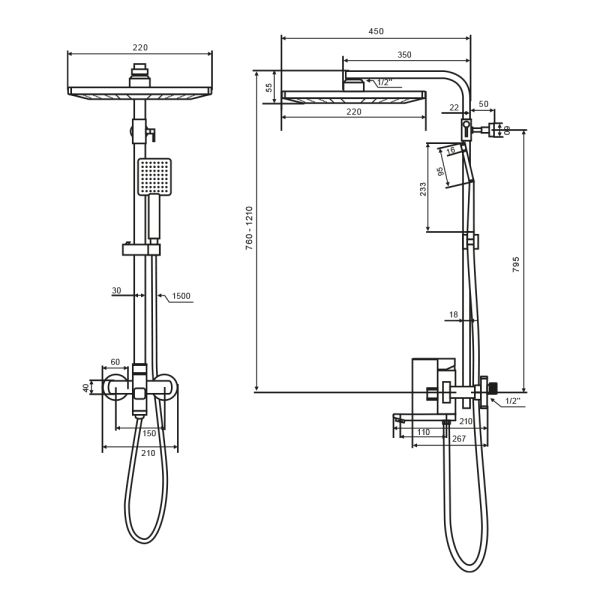 Душевая система Maretti Project Black PB21RYN56, черный купить