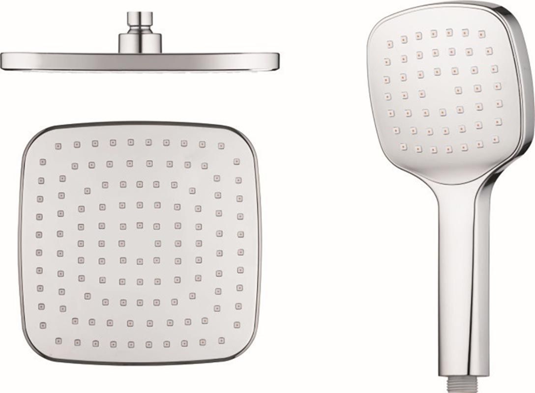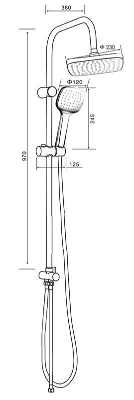 Душевая система создаёт эффект тропического дождя, что дарит непередаваемые эмоции во время ежедневных банных процедур. Конструкция обеспечивает стабильный и интенсивный напор. Подвижные детали отличаются долговечностью. Фиксируется душевая система непосредственно на стене, что позволяет рационально использовать ограниченное пространство ванной комнаты. Верхний душ 230х230 мм (с силиконовыми наконечниками для просто удаления известкового налёта и регулировкой угла наклона), ручной душ 120х120 мм (1 режим), регулируемый по высоте и наклону держатель ручного душа, шланг 1,5 м (в металлической оплетке) с защитой от перекручивания, штанга 970 мм. с подвижным держателем (возможность установки в старые отверстия). Цвет глянцевый хром.