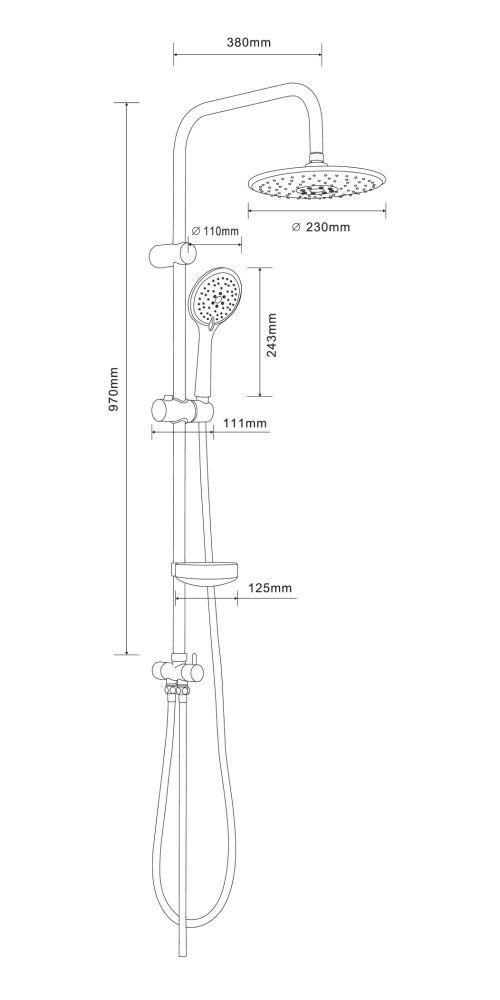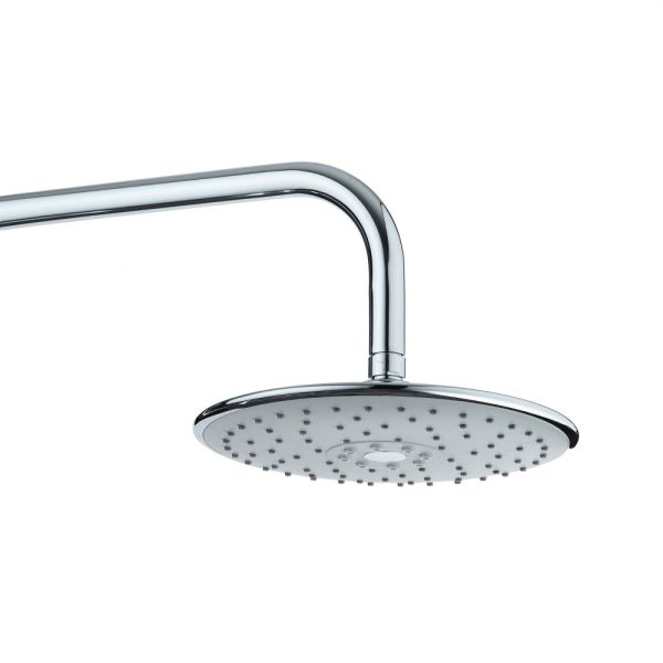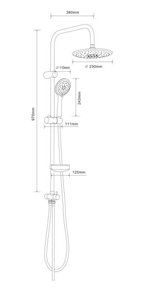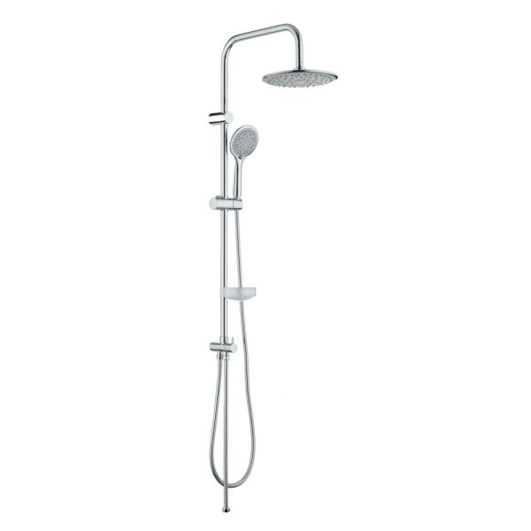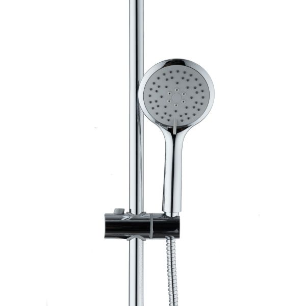 Душевая система в цвете глянцевый хром: верхний душ (d230 мм) создаёт эффект тропического дождя, что дарит непередаваемые эмоции во время ежедневных банных процедур. Ручной душ d110 мм (3 режима) на гибком полутораметровом шланге (в металлической оплетке) с защитой от перекручивания. Держатели верхнего и ручного душа с регулировкой угла наклона, штанга 970 мм. с подвижным держателем (возможность установки в старые отверстия). В комплекте также переключатель потоков и пластиковая мыльница. Подвижные детали отличаются долговечностью. Форсунки верхнего и ручного душа с функцией легкого очищения от известкового налета.