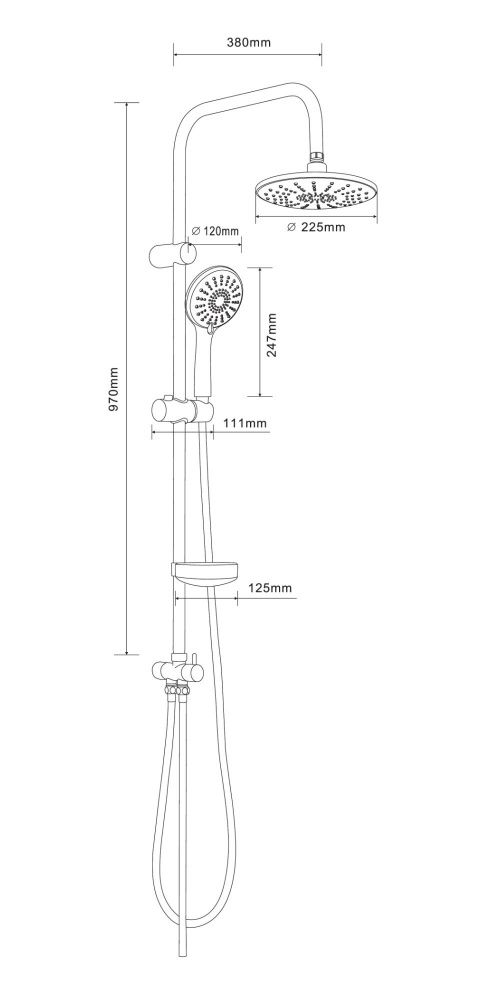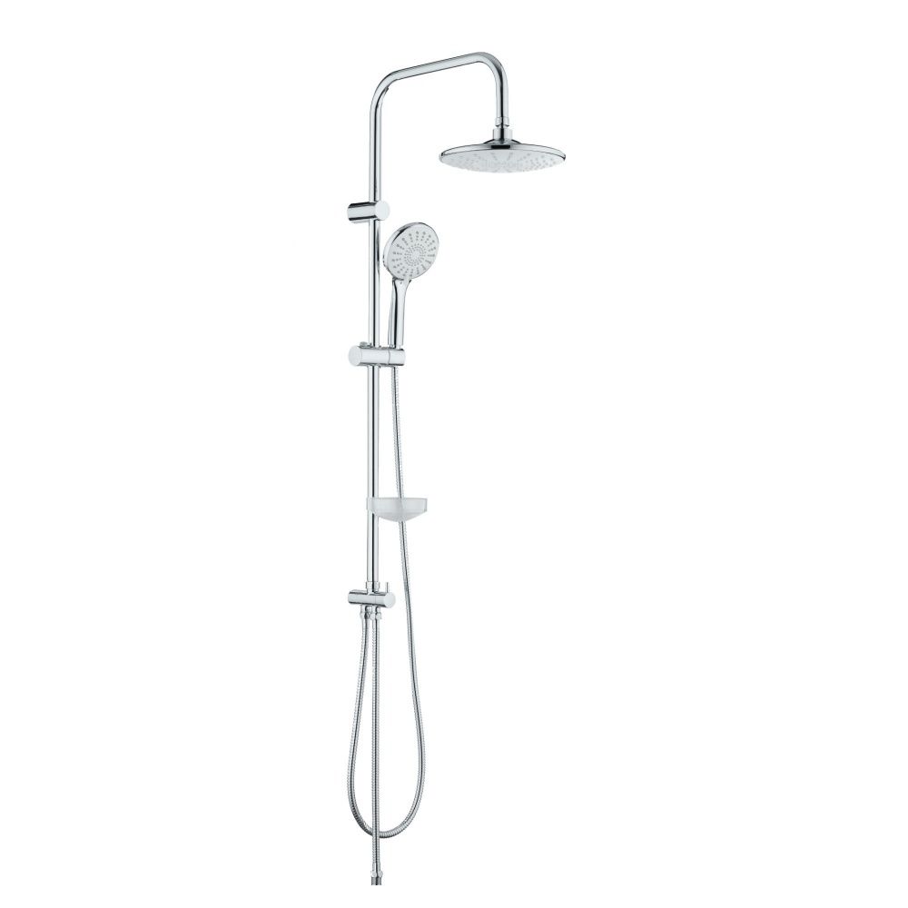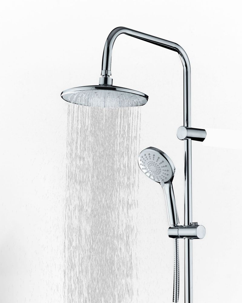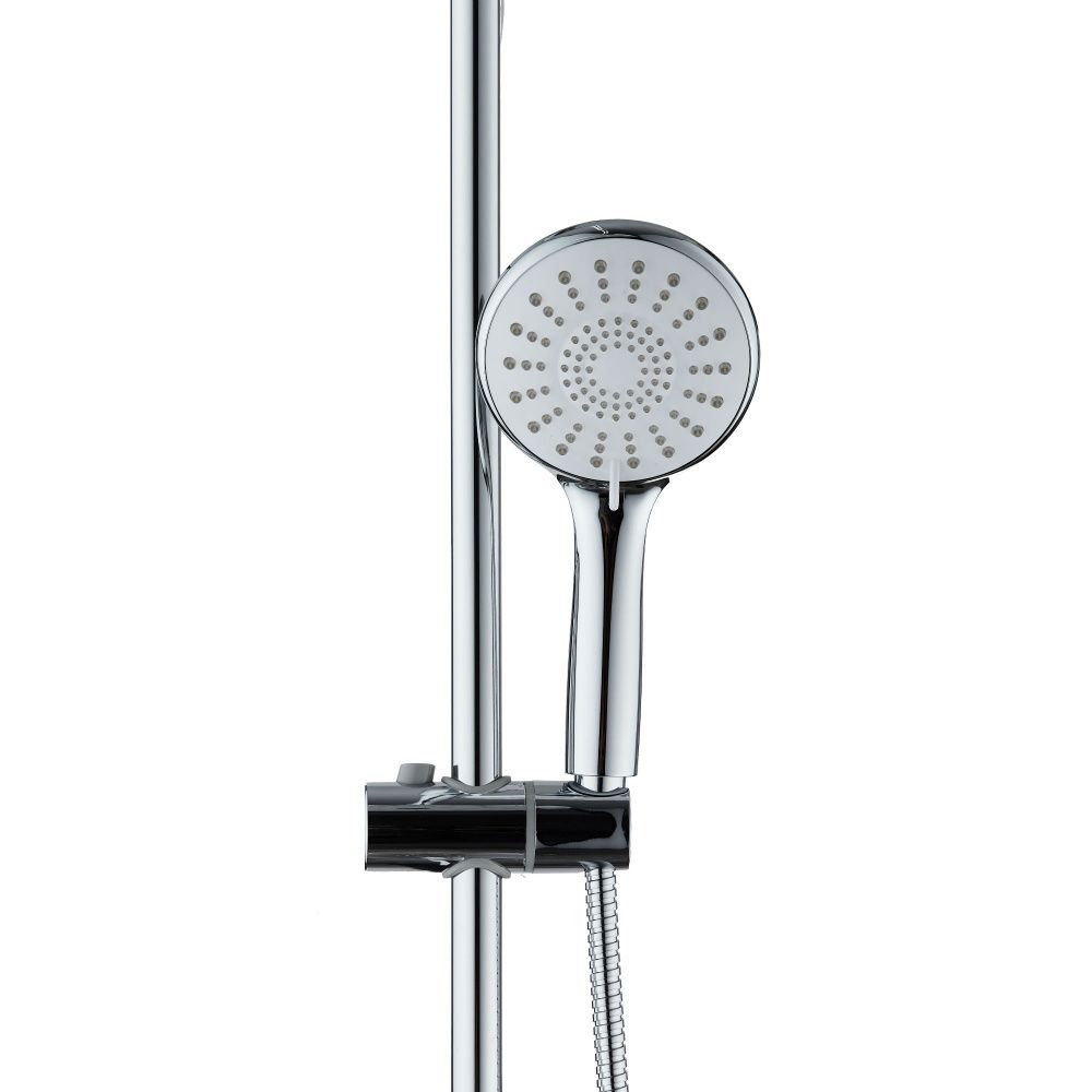 Душевая система в цвете глянцевый хром: верхний душ (d225 мм) создаёт эффект тропического дождя, что дарит непередаваемые эмоции во время ежедневных банных процедур. Ручной душ d120 мм (3 режима) на гибком полутораметровом шланге (в металлической оплетке) с защитой от перекручивания. Держатели верхнего и ручного душа с регулировкой угла наклона, штанга 970 мм. с подвижным держателем (возможность установки в старые отверстия). В комплекте также переключатель потоков и пластиковая мыльница. Подвижные детали отличаются долговечностью. Форсунки верхнего и ручного душа с функцией легкого очищения от известкового налета.