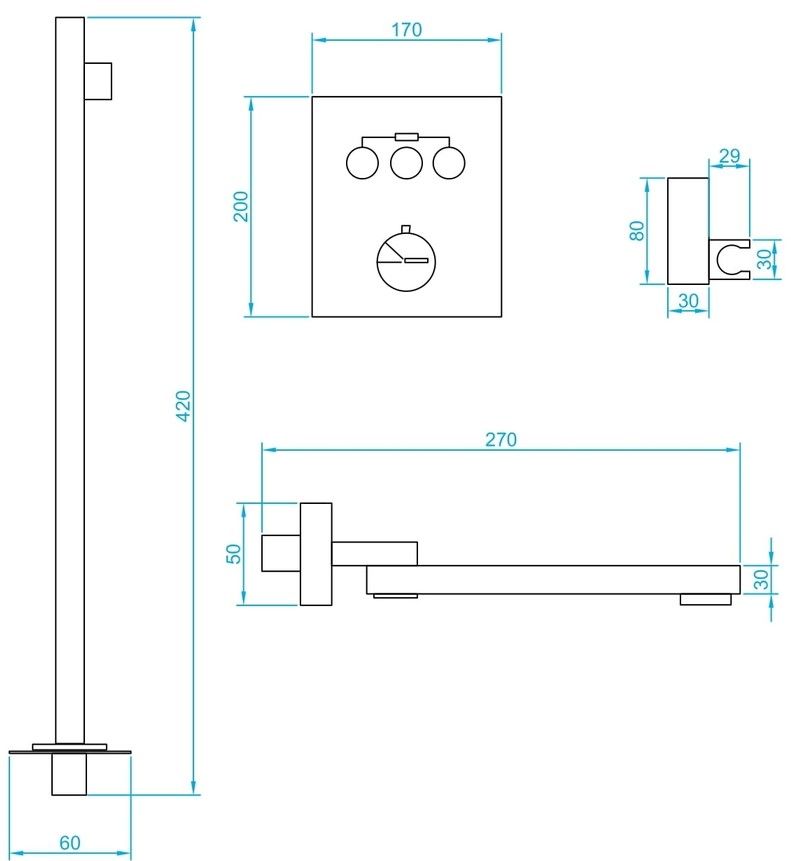 • Головной душ и горизонтальный держатель из нержавеющей стали. Головной душ оснащён шарнирным креплением, что позволяет выбрать необходимый угол направления воды