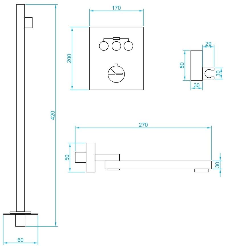 - Шланг ручного душа – нержавеющая сталь, длина 1.5 м