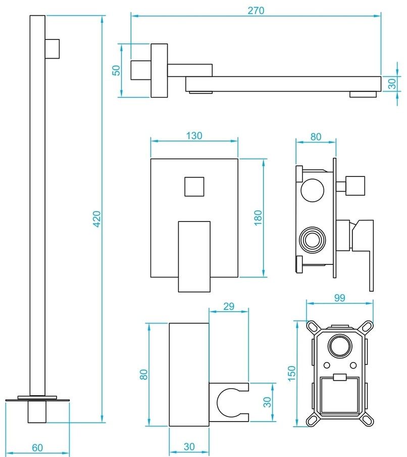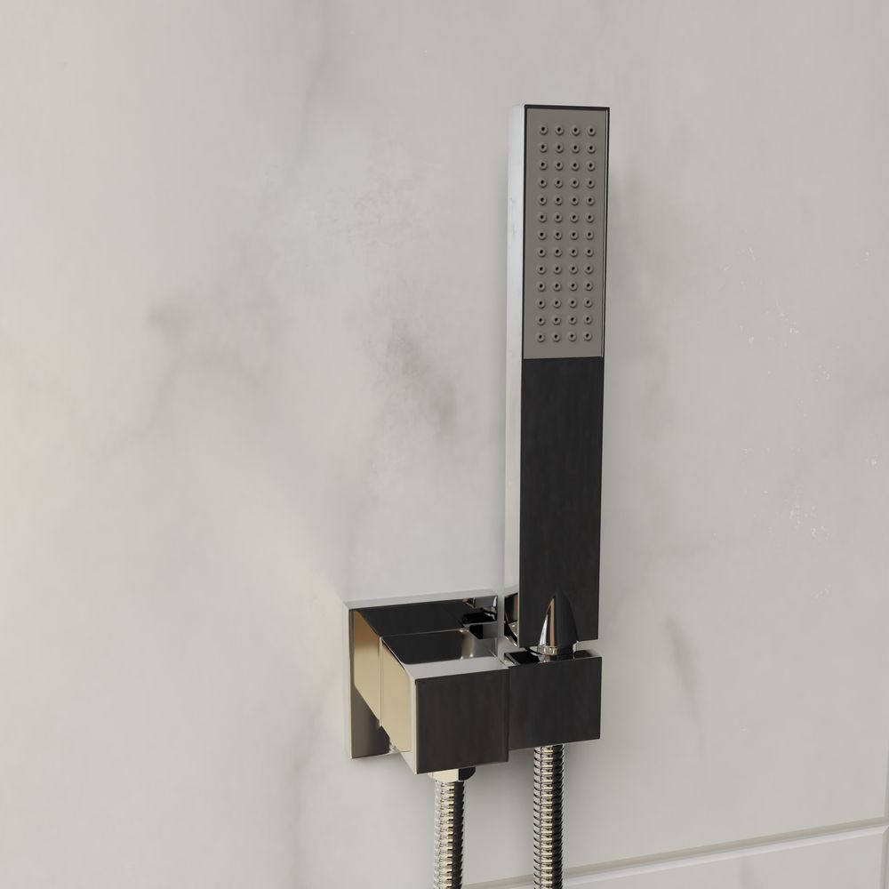• Головной душ, горизонтальный держатель из нержавеющей стали. Головной душ оснащён шарнирным креплением, что позволяет выбрать необходимый угол направления воды
