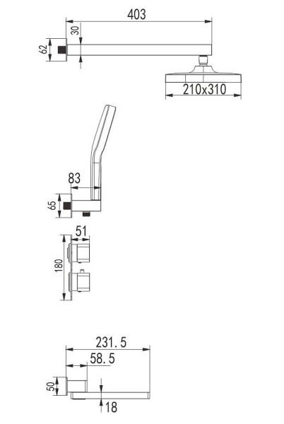Душевая система с термостатом встраиваемая Rose R1595H, белый/хром.Монтаж: внутренний (скрытый).Стилистика дизайна: современный стиль.Управление: термостат.Размер верхнего душа: 31x21.Форма верхнего душа: прямоугольная.