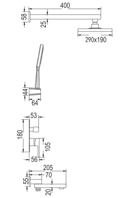 Душевая система встраиваемая Rose R2835H, черный.Монтаж: внутренний (скрытый).Стилистика дизайна: современный стиль.Управление: рычажное.Размер верхнего душа: 29x19.Форма верхнего душа: прямоугольная.
