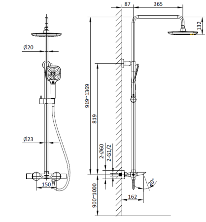 Размер верхнего душа, см:36