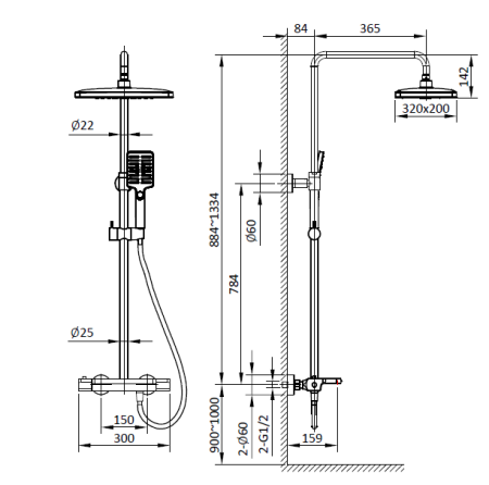 Душевая система с термостатом AltroBagno Lamberto 030418 NeOp черный матовый купить