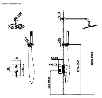 Душевая система с термостатом AltroBagno Unione 040409 GrMt оружейная сталь