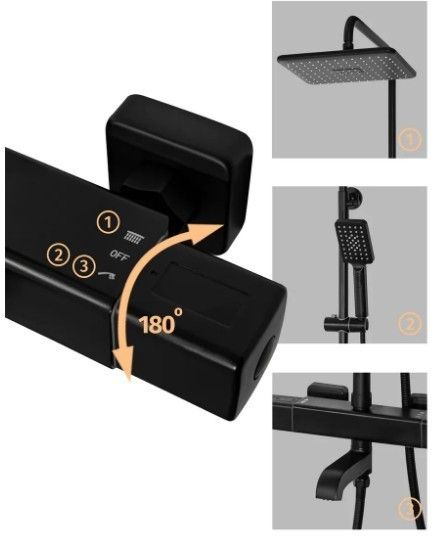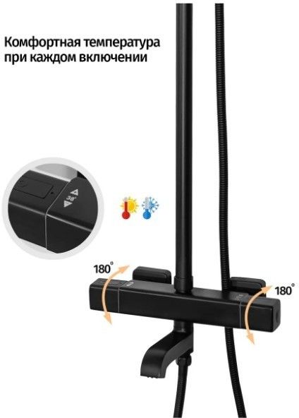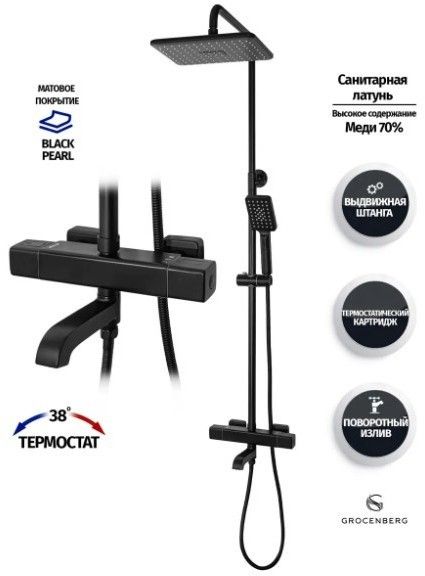 Душевая система с термостатом Grocenberg GB7005 Черный матовый купить