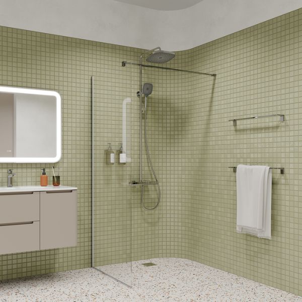 Современная душевая система SpaHome, где собраны топовые технологии для самого комфортного принятия душа и ванны: клавишное управление, термостат, тропический верхний душ, большая ручная лейка, излив.