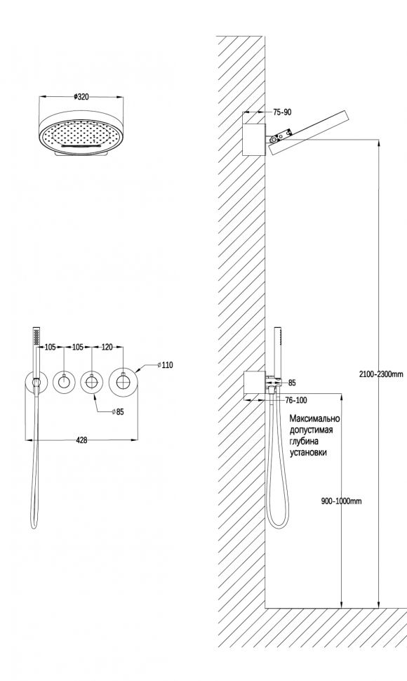 • Размер верхнего душа, см: