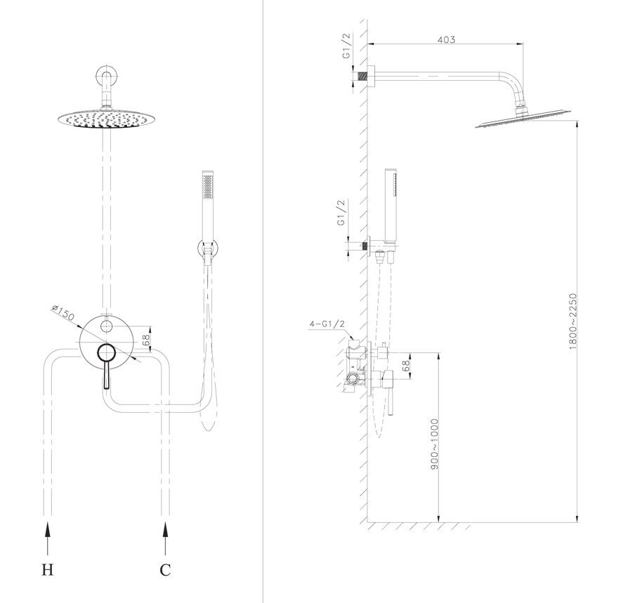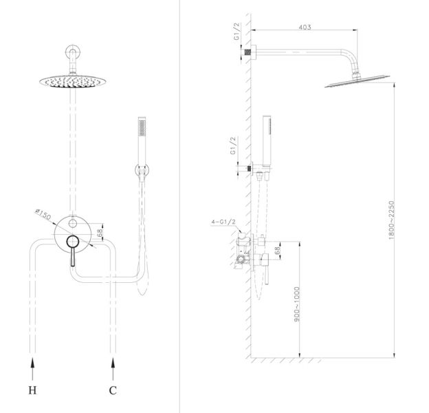Размер верхнего душа, см:25