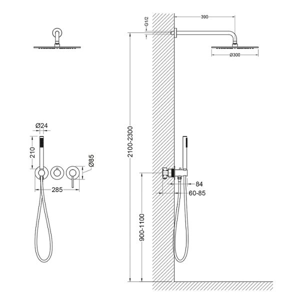 Размер верхнего душа, см:30