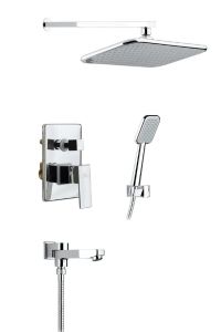 Душевая система скрытого монтажа с прямоугольной лейкой в стиле модернДушевая система сделана из латуни класса А