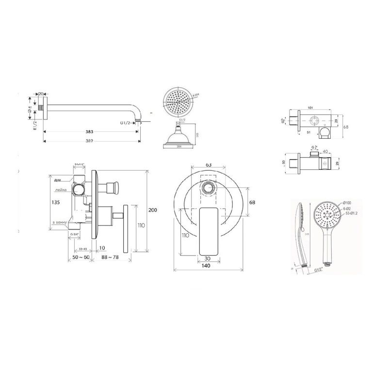 Душевая система встраиваемая Bronze de Luxe PURE A800/9143-2, хром