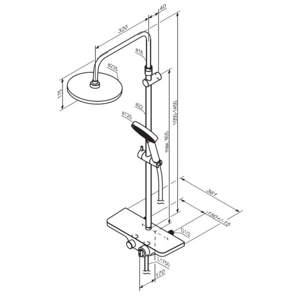 Душевая система с ванно-душевым термостатическим смесителем-полкойАртикул: 947760300