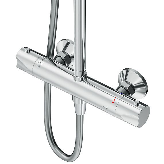 термостатический смеситель изготовлен по технологии AntiScald, благодаря которой корпус смесителя не нагревается во время использования;