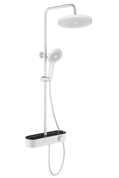состоит из: верхний душ, ручной душ, смеситель для ванны, штанга для душа, держатель для душа; верхний душ 260 1jet; размер душевого диска: 260 мм, тип струи: Rain; душевая лейка 126 мм, 3 режима струи; каскадный излив; шарнирное соединение: регулируемый угол верхнего душа;длина держателя для душа: 400 мм;держатель для ручного душа регулируемый по высоте; поворотный держатель для душа; вид монтажа: внешний монтаж; соединительная резьба G ½; межосевое подключение 150 мм ± 12 мм; телескопическая штанга; подъемная труба может быть укорочена по высоте 100-450 мм; шланг 1500 мм; 2 года гарантии.