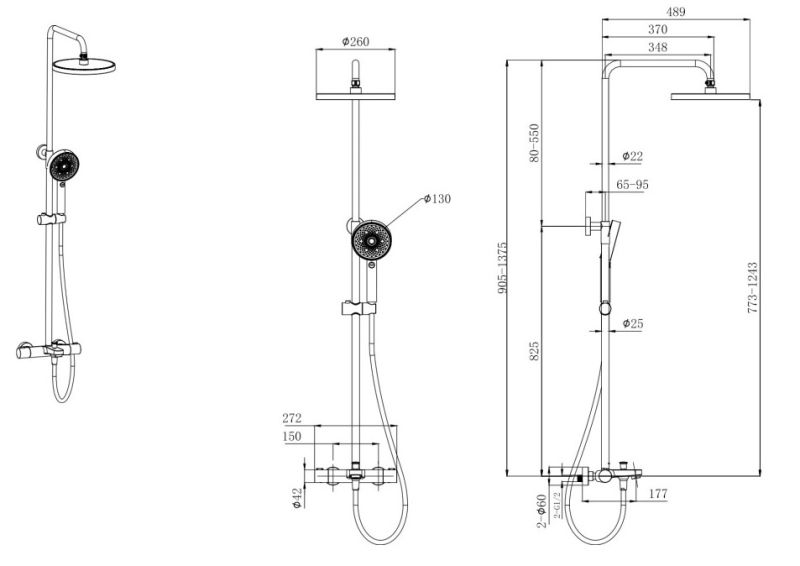 • регулируемая душевая штанга из нержавеющей стали, выдвигающаяся до 1375 мм в высоту