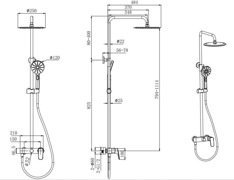 Размер верхнего душа, см:25