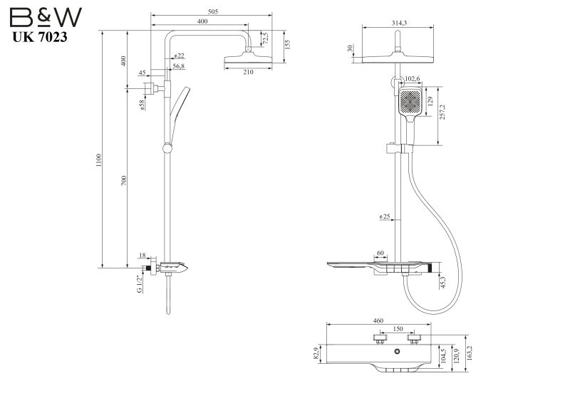 Душевая стойка Black&White Universe 7023MG оружейная сталь