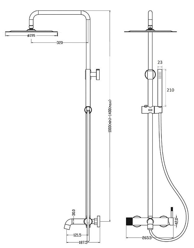• Верхний душ