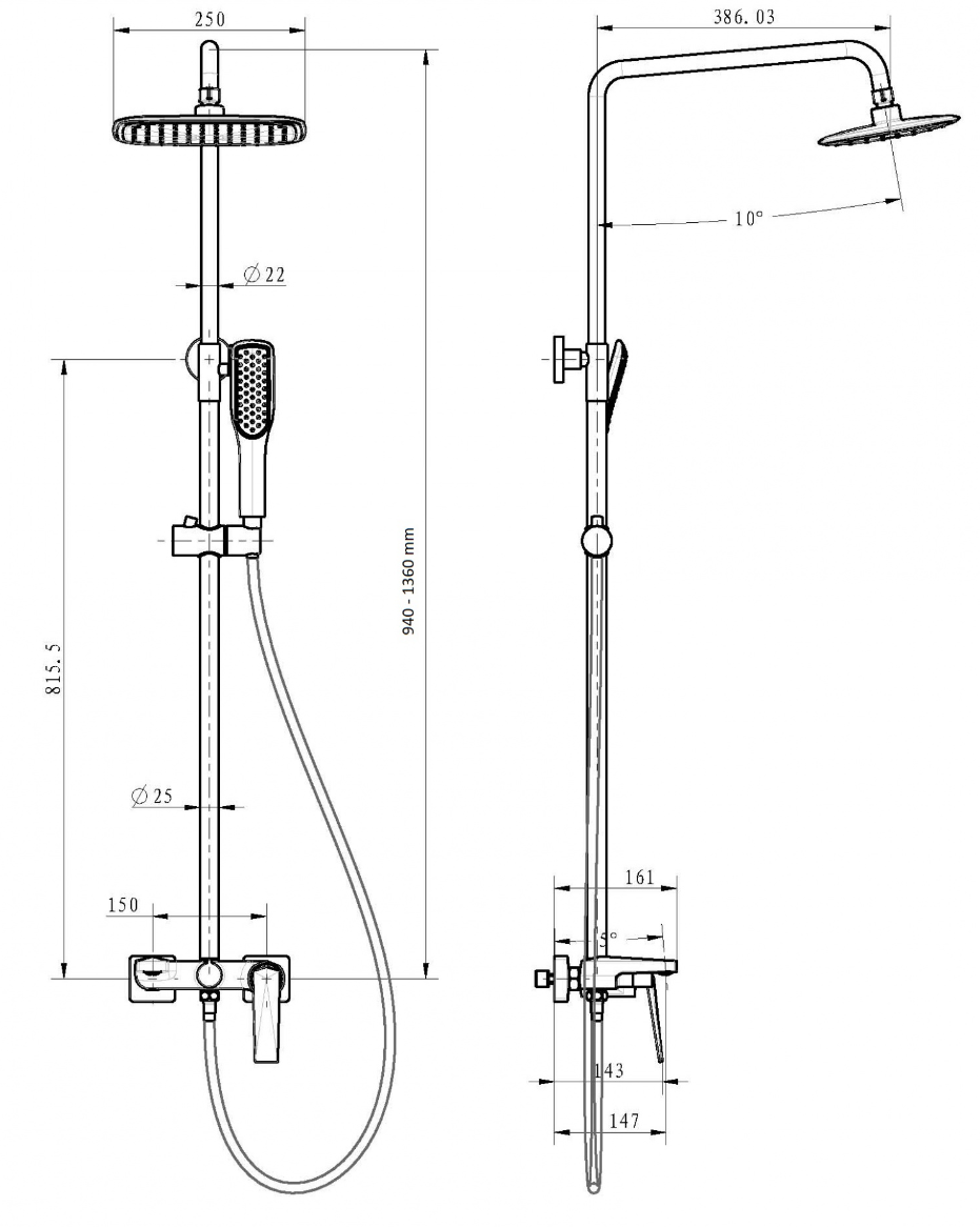 Душевая стойка Boheme Venturo 378-SGM антрацит глянец