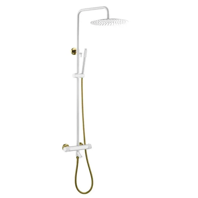 Душевая стойка c термостатом Boheme Uno 468-T-WG белый/золото купить