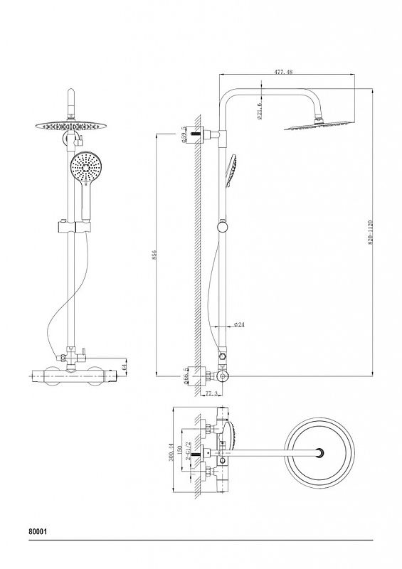 Душевая система в комплекте с термостатическим смесителем для душа; душевая лейка Ø120 мм 3-функциональная, ограничение потока 8 л/мин.; ультратонкий верхний душ Ø250 мм, ограничение потока 12 л/мин, нержавеющая сталь, шаровое соединение; душевая труба Ø25 мм для верхнего душа, ручное переключение, пластиковый слайдер, металлические крепления к стене; пластиковый шланг IdealFlex 1750 мм; смеситель для душа с двумя выходами, декоративные накладки для скрытого монтажа