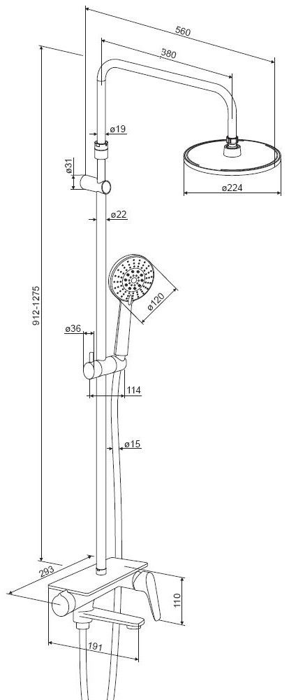Размер верхнего душа, см:22.4