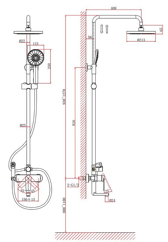 Душевая стойка DQ Bayern.F?rth DA1524705B18 с гигиеническим душем чёрный матовый купить