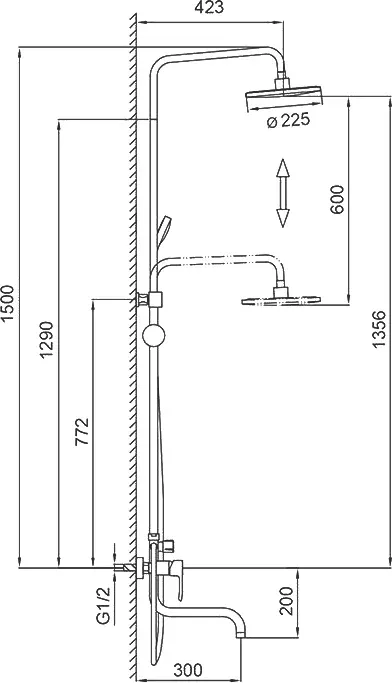 Вылет верхнего душа, см