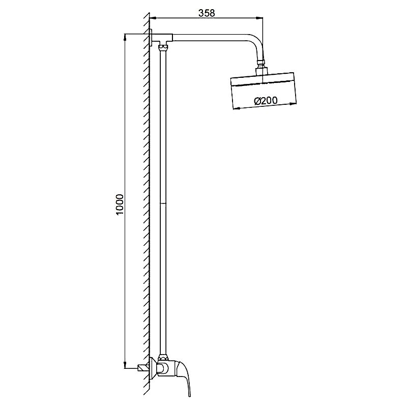 смеситель, душевая стойка, верхний душ, настенный держатель, отражатели, эксцентрики