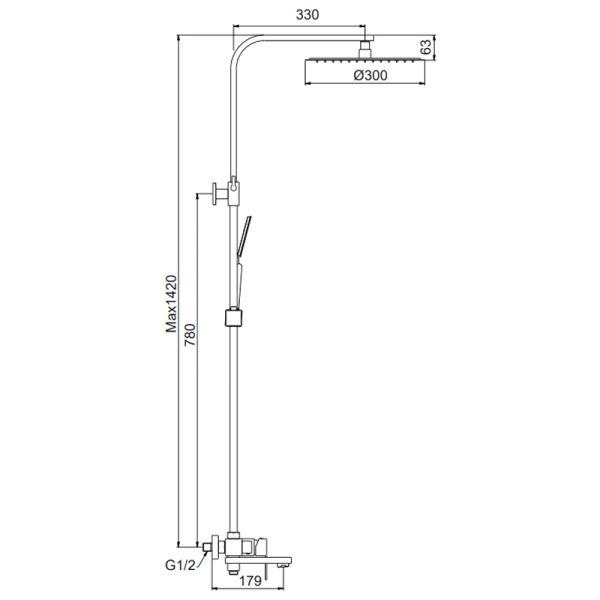 Размер верхнего душа, см:30