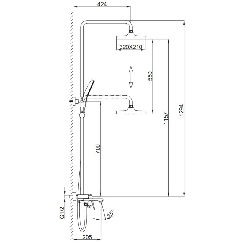 Размер верхнего душа, см:32