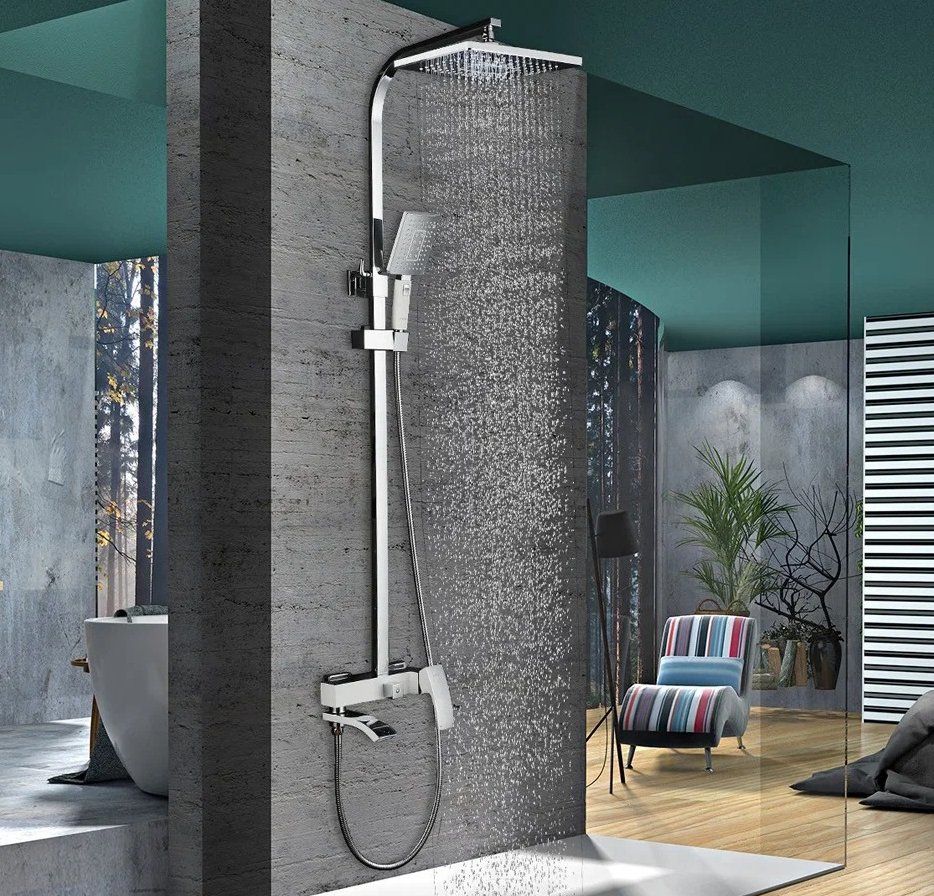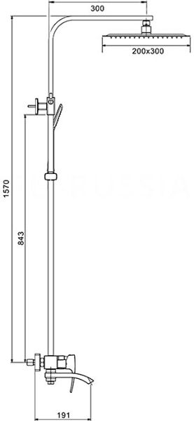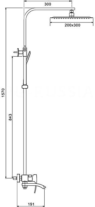 - Комплектация: с душевой лейкой, с шлангом для душа, верхний душ, излив, с настенным держателем, смеситель