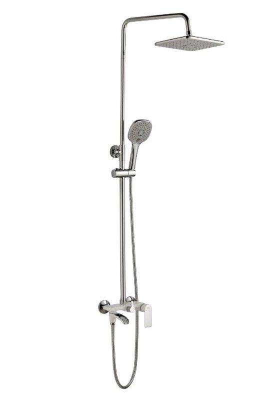 Душевая система Haiba.Изготовлена из высококачественной латуни.Прекрасный тропический душ.Каскадный излив для наполнения ванны, который также служит переключателем потока воды на душ.Душевая штанга регулируется по высоте от 66,3 см до 122,7 см.