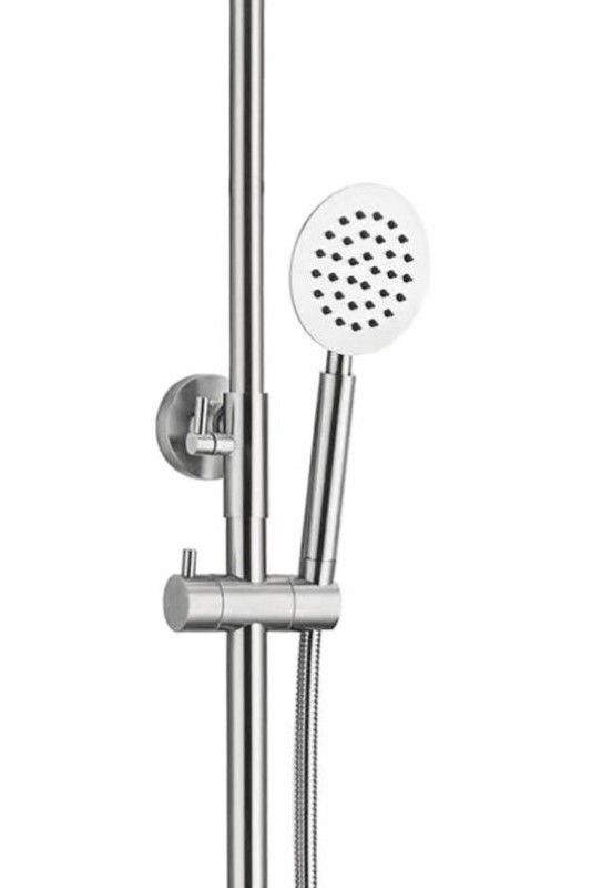 Душевая система Haiba.Изготовлена из высококачественной нержавеющей стали.Прекрасный тропический душ.Излив для наполнения ванны.Душевая штанга регулируется по высоте от 88,1 см до 153,1 см.