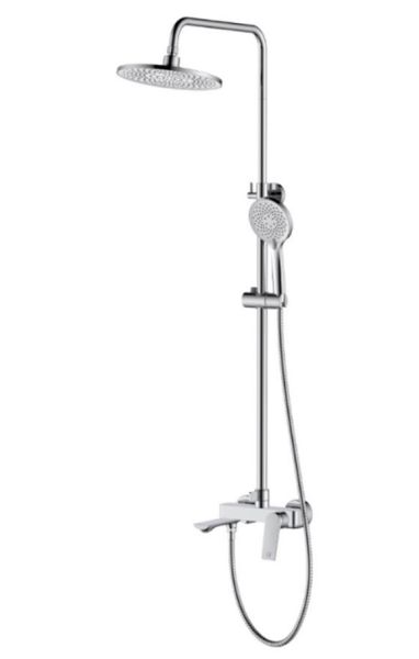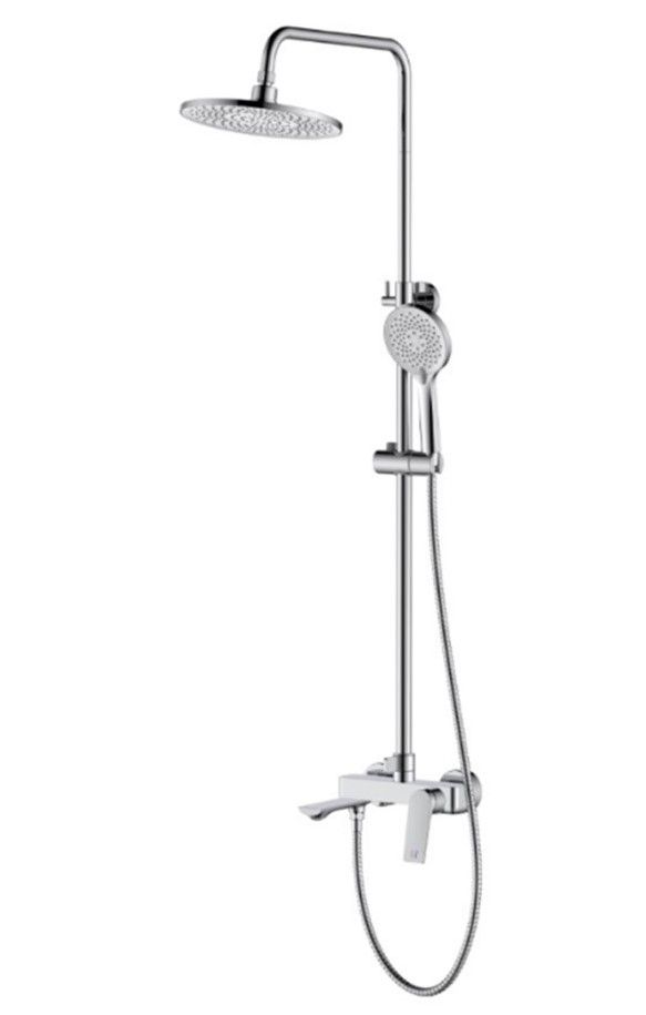 Душевая система Haiba.Изготовлена из высококачественной латуни.Прекрасный тропический душ.Излив для наполнения ванны, который также служит переключателем потока воды на душ.Душевая штанга регулируется по высоте от 78 см до 110 см.